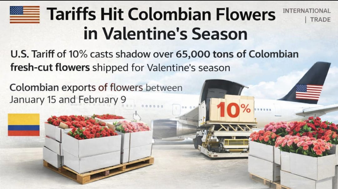 एबीसी नेशनल न्यूज | बोगोटा / वॉशिंगटन | 11 फरवरी 2026 65,000 टन ताज़ा फूल पर 10% शुल्क से चिंता वैलेंटाइन डे के मौके पर