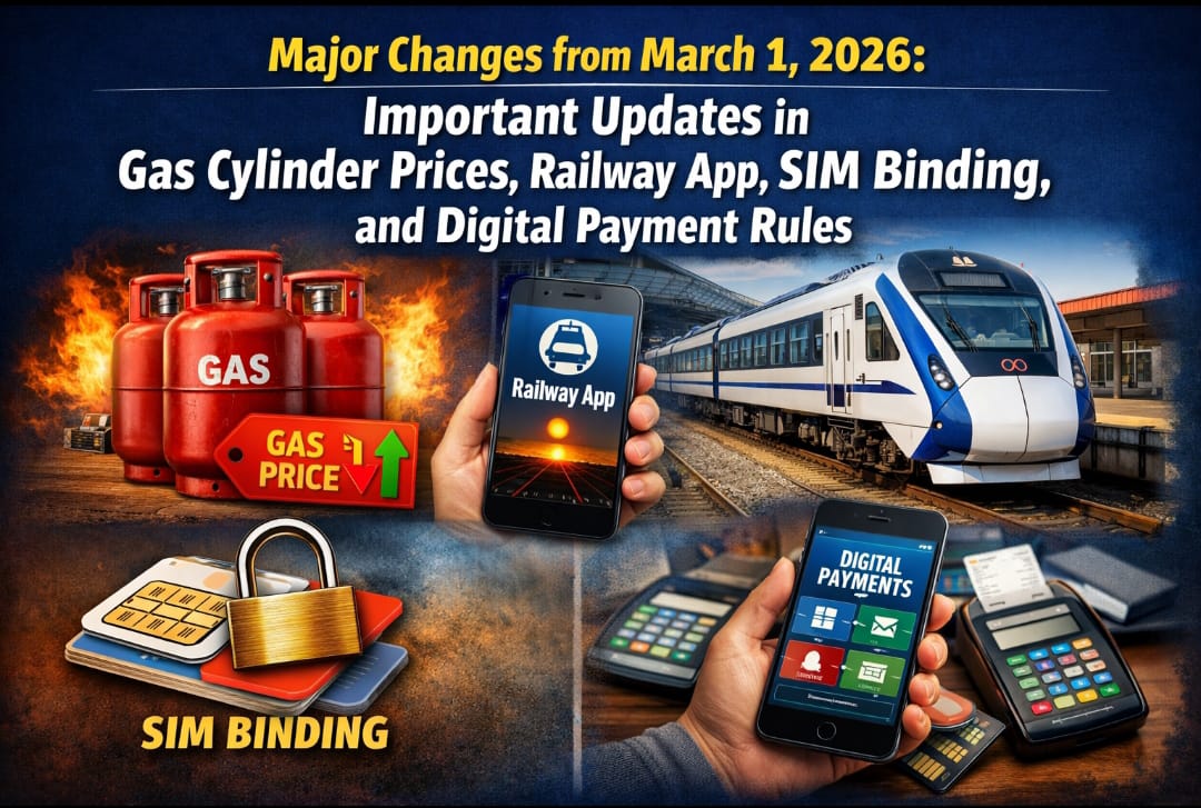 1 मार्च 2026 से बड़े बदलाव: गैस सिलेंडर, रेलवे ऐप, सिम-बाइंडिंग और डिजिटल पेमेंट नियमों में अहम परिवर्तन