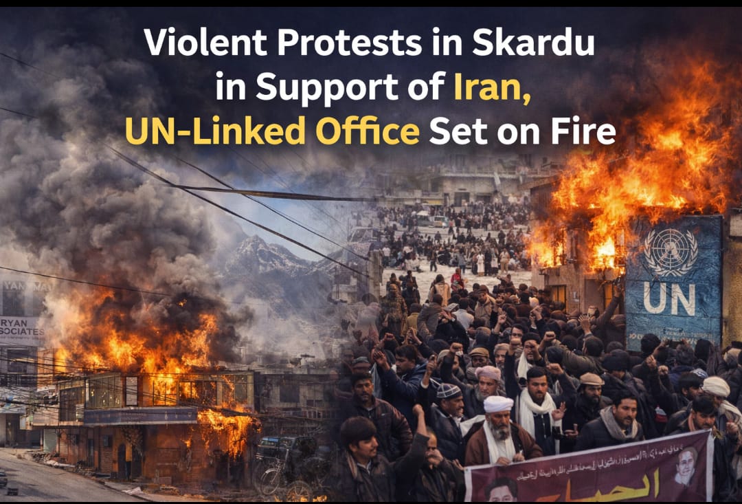 स्कर्दू में ईरान के समर्थन में उग्र प्रदर्शन, संयुक्त राष्ट्र से जुड़े कार्यालय में आगजनी