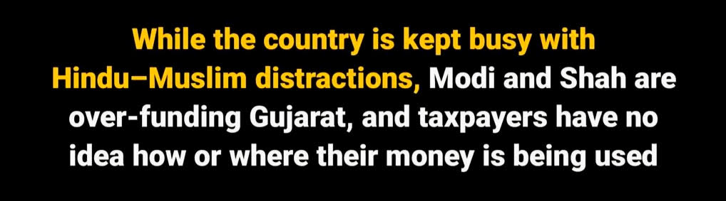 गुजरात, जो केंद्र सरकार का राजनीतिक गढ़ माना जाता है, वर्षों से भारी-भरकम केंद्रीय फंडिंग पाता रहा है। लेकिन अब यह खुलासा हो रहा है कि इन फंड्स का कोई हिसाब-किताब नहीं रखा गया, न कोई ऑडिट, न कोई रिपोर्ट, न कोई जवाबदेही। जबकि दूसरी तरफ जनता को हिंदू–मुस्लिम, मंदिर–मस्जिद, ‘संस्कृति रक्षा’, ‘समान नागरिकता’ और धर्म आधारित विवादों में उलझाए रखने का नैरेटिव लगातार परोसा जा रहा है। यह रणनीति साफ बताती है कि ध्यान भटकाने का खेल किस कदर सुनियोजित और खतरनाक स्तर पर चल रहा है।