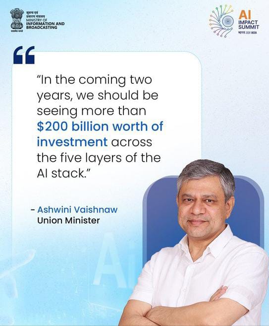 केंद्रीय मंत्री अश्विनी वैष्णव ने देश में आर्टिफिशियल इंटेलिजेंस क्षेत्र के भविष्य को लेकर बड़ा दावा किया है। उन्होंने कहा कि अगले दो वर्षों में AI स्टैक की पांच प्रमुख परतों में 200 अरब डॉलर से अधिक निवेश देखने को मिल सकता है। उनका मानना है कि यह निवेश भारत को वैश्विक AI इकोसिस्टम में एक मजबूत और प्रतिस्पर्धी केंद्र के रूप में स्थापित करेगा।