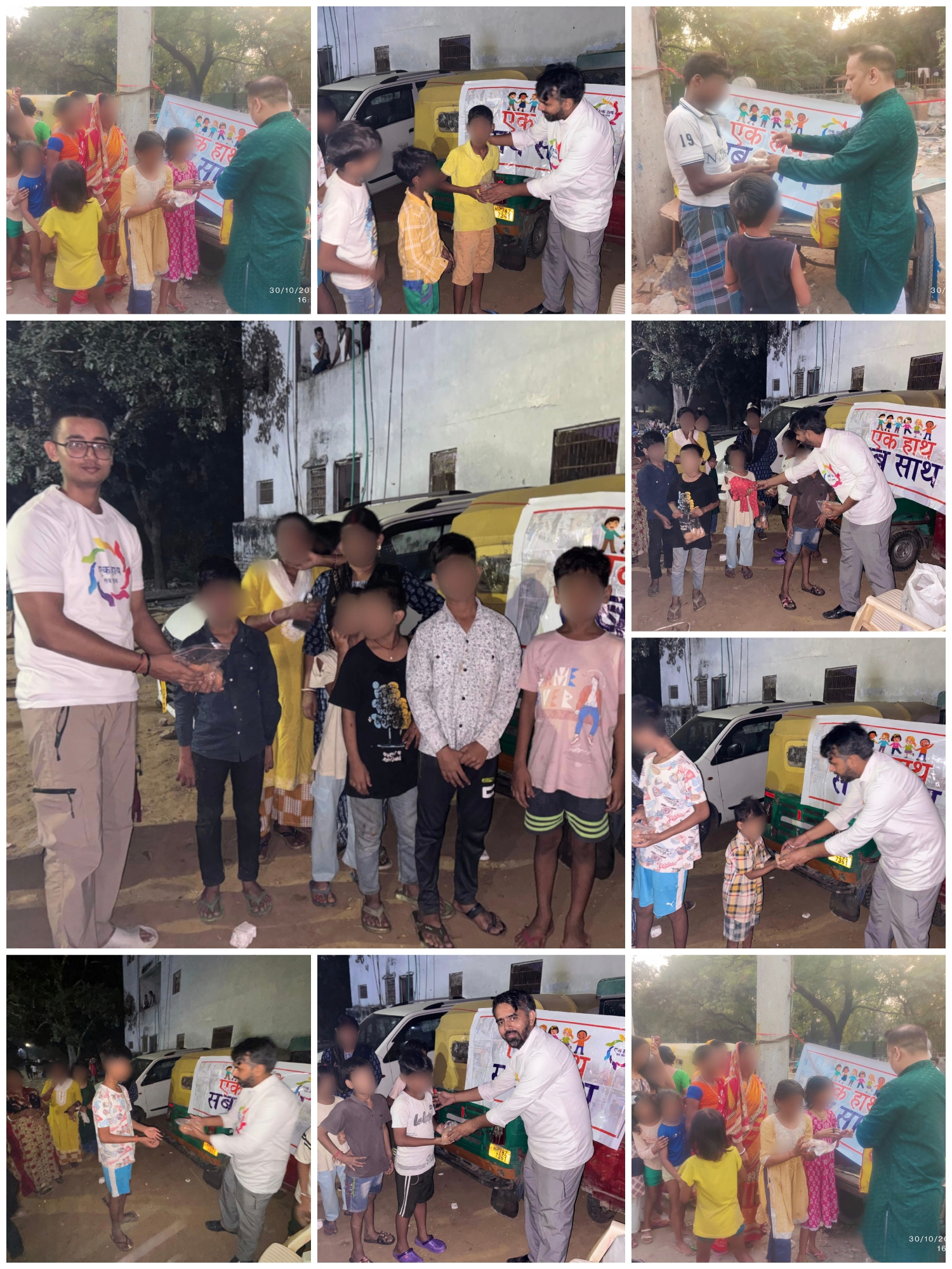 दीपावली के पावन अवसर पर, सामाजिक संस्था “एक हाथ सब साथ ट्रस्ट” ने सेवा और समर्पण की भावना का अभूतपूर्व प्रदर्शन करते हुए, दिल्ली के विभिन्न स्लम क्षेत्रों और विशेष रूप से जे.जे. कॉलोनी में जाकर लगभग 800 जरूरतमंद परिवारों के साथ खुशियाँ साझा कीं। यह पहल सिर्फ एक वितरण कार्यक्रम नहीं थी, बल्कि वंचित समुदायों के जीवन में रोशनी, सम्मान और आशा का संचार करने का एक भावनात्मक प्रयास था। संस्था के स्वयंसेवकों ने इन परिवारों के बीच दीये, मोमबत्तियाँ, बाती और नए वस्त्र वितरित किए।