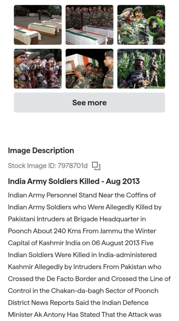 फैक्ट चेक में रिवर्स इमेज सर्च और उपलब्ध फोटो आर्काइव की जांच से स्पष्ट हुआ कि वायरल तस्वीर नई नहीं है। यह फोटो वर्ष 2013 की है, जब पुंछ सेक्टर में हुए हमले के बाद शहीद जवानों के ताबूतों के साथ सैनिक श्रद्धांजलि देते दिखाई दे रहे थे। उस समय की मीडिया कवरेज और फोटो डेटाबेस में यह तस्वीर दर्ज है, जिससे यह साफ हो गया कि इसे हालिया घटना के रूप में प्रस्तुत करना गलत और भ्रामक है।