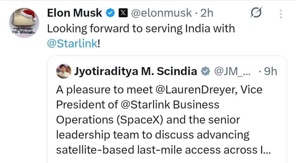 Starlink की भारत एंट्री लंबे समय से चर्चा का विषय रही थी, लेकिन लाइसेंसिंग और नीति से जुड़े मुद्दों ने इसे रोककर रखा था। अब, जब सरकार खुद Starlink नेतृत्व के साथ सक्रिय बातचीत में दिख रही है, तो यह संकेत मिलता है कि इस बार मामला सिर्फ़ चर्चाओं तक सीमित नहीं रहने वाला—बल्कि अंतिम मंज़िल की ओर तेजी से बढ़ रहा है। यह भी उल्लेखनीय है कि Starlink आधिकारिक अकाउंट ने भी भारत को प्रमुख बाज़ार के रूप में संबोधित किया है, और Lauren Dreyer का सत्यापित अकाउंट इस सहयोग को विश्वसनीयता देता है।