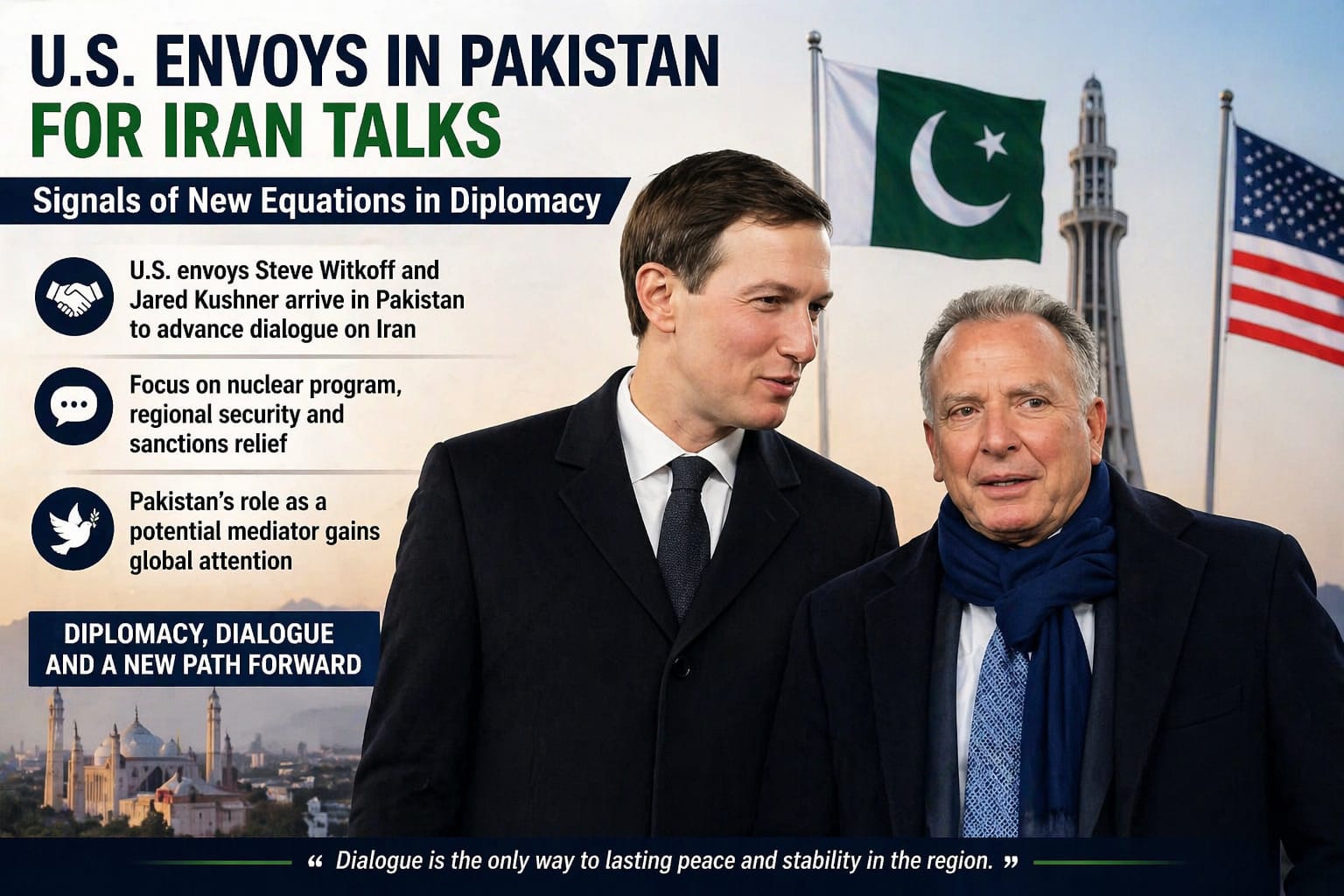 मध्य-पूर्व में बढ़ते तनाव और बदलते वैश्विक समीकरणों के बीच एक नई कूटनीतिक पहल सामने आई है। व्हाइट हाउस ने पुष्टि की है कि अमेरिकी दूत Steve Witkoff और Jared Kushner शनिवार पाकिस्तान दौरे पर रहेंगे, जहां उनका मुख्य उद्देश्य ईरान से जुड़े संवेदनशील मुद्दों पर बातचीत को आगे बढ़ाना है। इस पहल को सिर्फ एक सामान्य दौरा नहीं माना जा रहा, बल्कि इसे उस बड़े कूटनीतिक प्रयास के रूप में देखा जा रहा है जो क्षेत्रीय तनाव को कम करने और बातचीत के नए रास्ते खोलने की कोशिश कर रहा है। यह दौरा ऐसे समय में हो रहा है जब अमेरिका, ईरान और इजरायल के बीच संबंध बेहद तनावपूर्ण बने हुए हैं। हाल के महीनों में कई घटनाओं ने हालात को और जटिल बना दिया है। ऐसे में पाकिस्तान की भूमिका अचानक महत्वपूर्ण हो गई है। पाकिस्तान, जो लंबे समय से अमेरिका और इस्लामिक दुनिया के बीच एक पुल की तरह काम करता रहा है, अब ईरान के साथ संवाद स्थापित करने में एक संभावित मध्यस्थ के रूप में देखा जा रहा है।