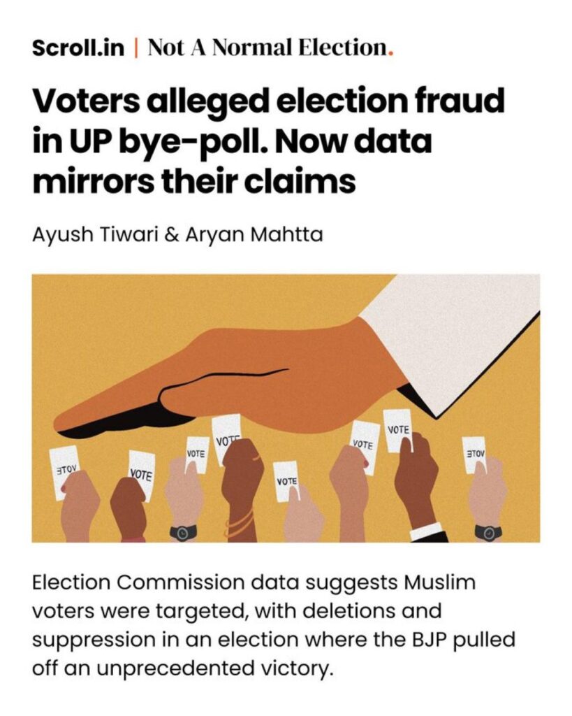 सबसे चौंकाने वाला तथ्य यह है कि बूथ-स्तर पर मुस्लिम बहुल इलाकों में भी बीजेपी को 70% तक वोट मिले, जबकि मई 2024 के लोकसभा चुनावों में इन्हीं इलाकों में केवल 2% मुस्लिमों ने बीजेपी को वोट दिया था। उदाहरण के लिए, कुंदरकी के हमीरपुर गांव में लोकसभा चुनाव के दौरान 70% मतदान हुआ था, लेकिन उपचुनाव में यह गिरकर केवल 18.5% रह गया। इसी गांव में बीजेपी का वोट शेयर 17.6% से उछलकर 84.1% हो गया। डेटा से यह भी सामने आया कि उपचुनाव में उन बूथों पर मतदान अपेक्षाकृत अधिक रहा जहां बीजेपी ने पहले अच्छा प्रदर्शन किया था, जबकि जहां बीजेपी कमजोर थी वहां मतदान नाटकीय रूप से घट गया।